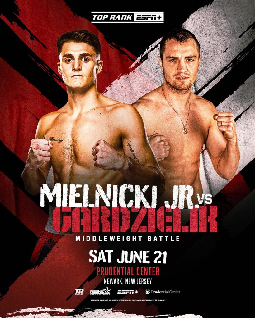 Na gali Top Rank 21 czerwca w Prudential Center Kamil Gardzielik (19-0, 4 KO) zmierzy się z lokalnym faworytem Vito Mielnickim Jr (20-1-1, 12 KO). Na tej samej gali Damian Knyba skrzyżuje rękawice z Marcinem Siwym.